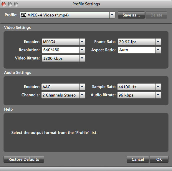 You can choose the output video format that you need from the drop-down "Profile" list. And you can also do some further settings, such as setting Video Encoder, Frame Rate, Video Bitrate, Resolution, Audio Encoder, Sample Rate, Channels, etc., by clicking the "Settings" button.